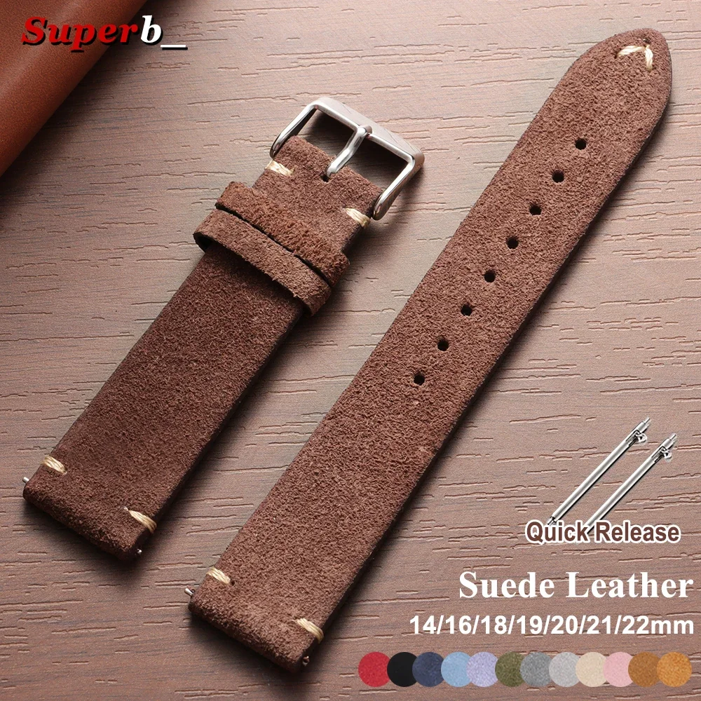 Vintage Suede Leather Watch Strap Quick Release Calfskin Wat...