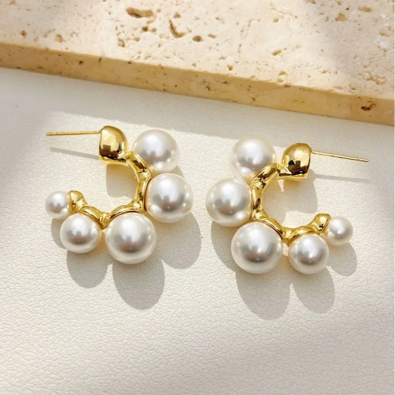 Light Luxury White Grey Imitation Pearl Stud Earrings for Wo...