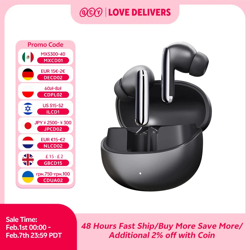 QCY MeloBuds Pro ANC Bluetooth 5.3 Earphones Wireless 46dB H...
